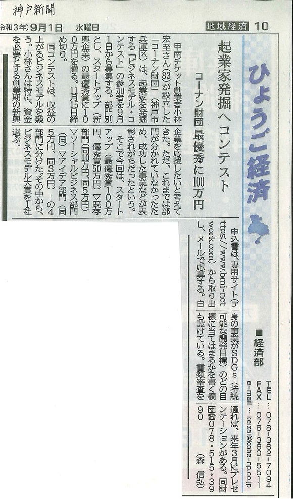 神戸新聞(1月3日朝刊)新春社長インタビュー