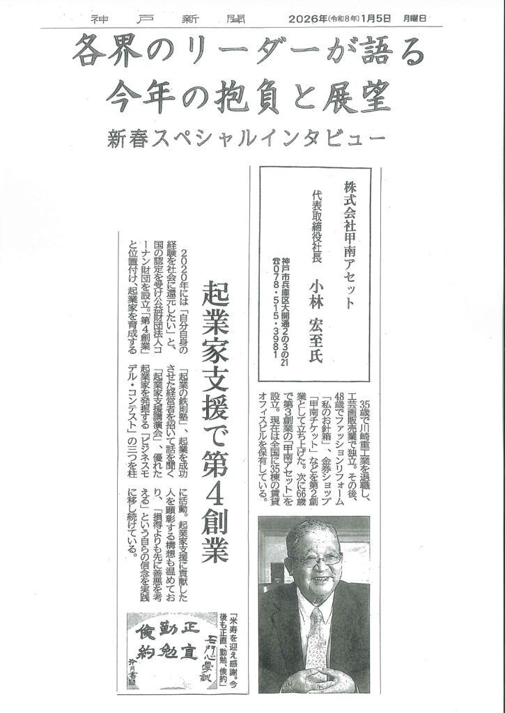 神戸新聞(1月5日朝刊)新春社長インタビュー