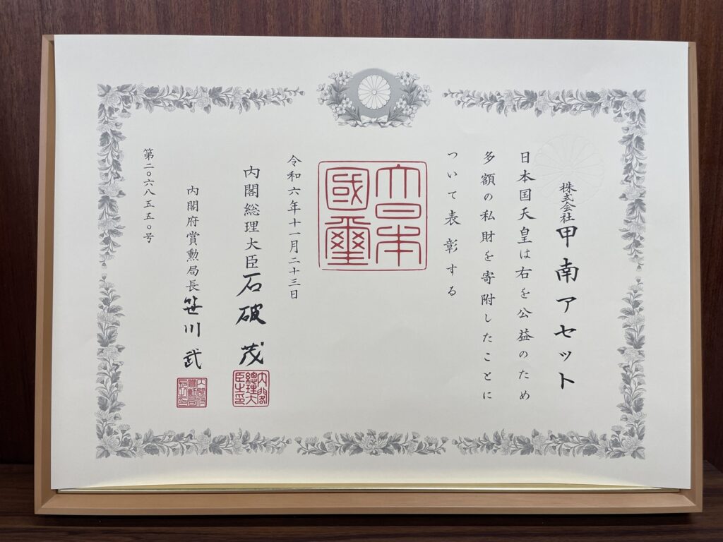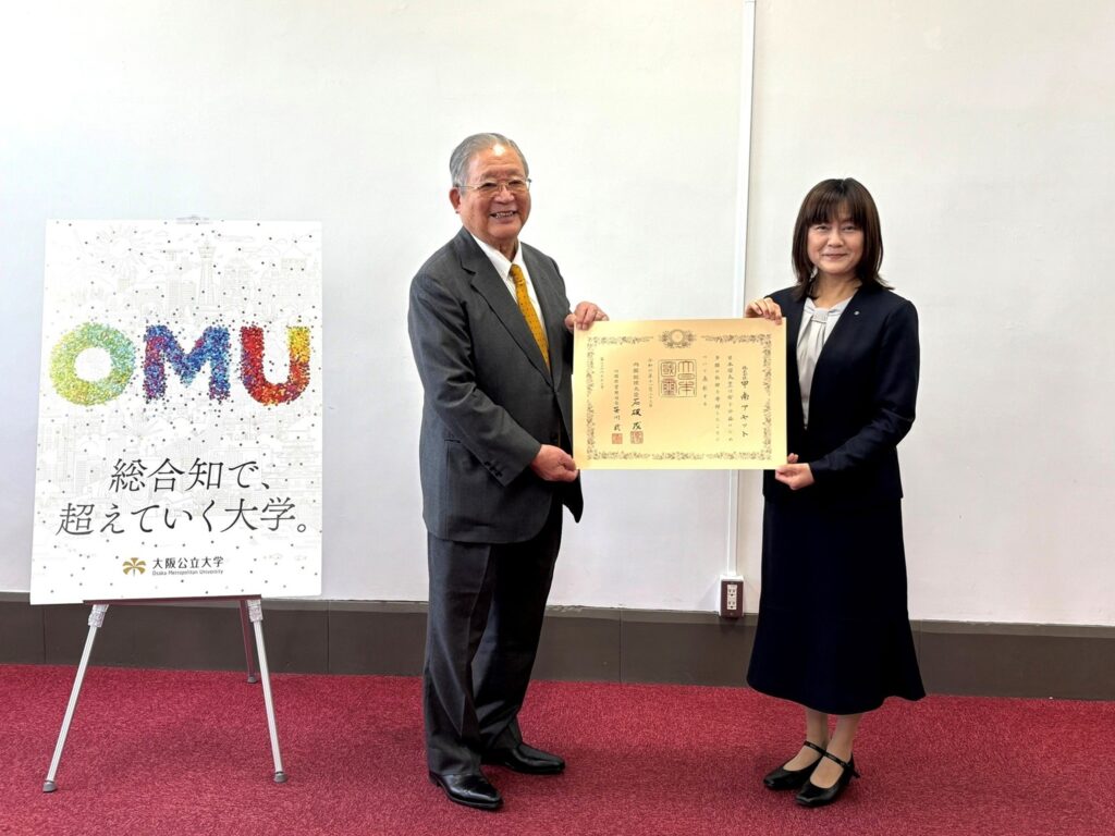このたび、株式会社甲南アセットは大阪公立大学への寄附で紺綬褒状を拝受いたしました。