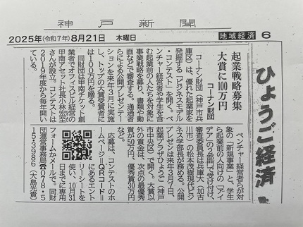 神戸新聞朝刊(8/21付け)に掲載されました!